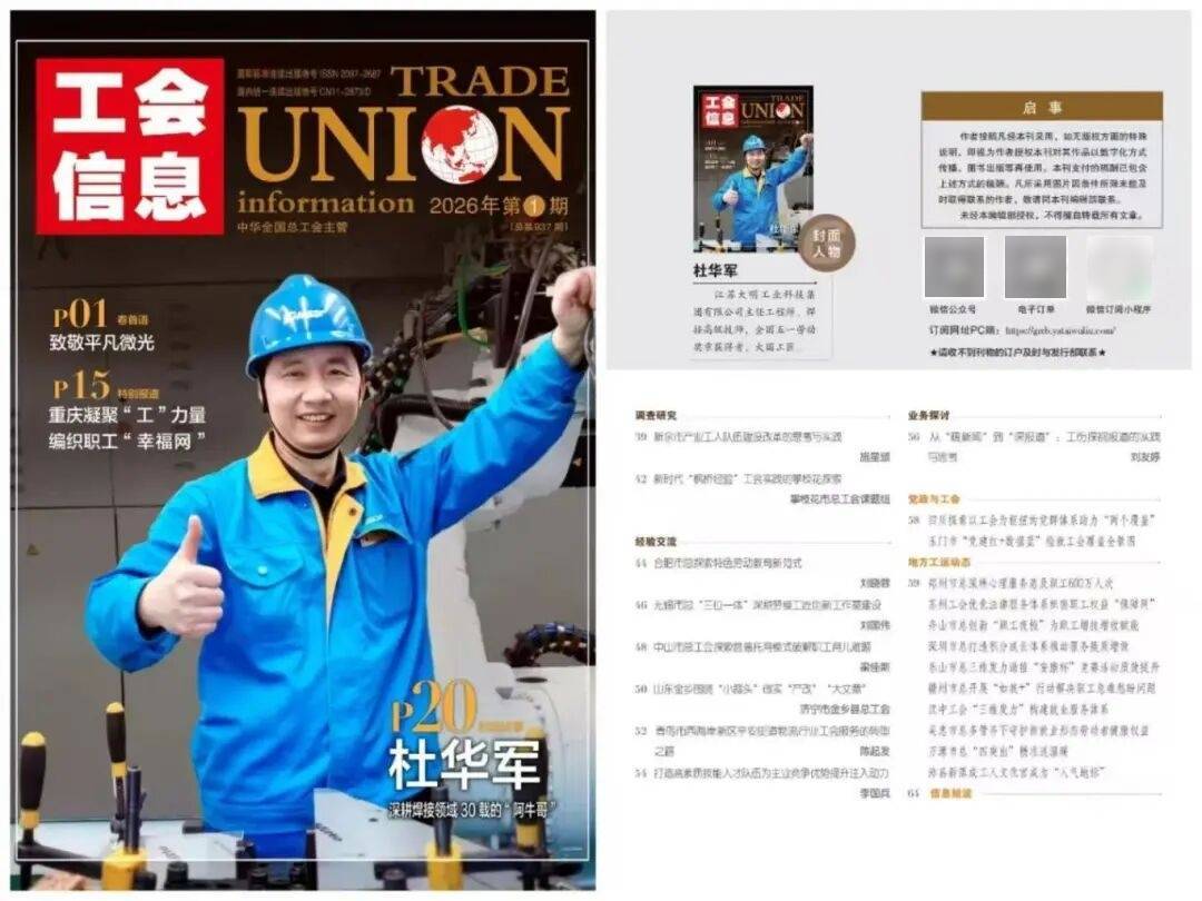 《中国工运and工会信息编辑部》封面故事《从农民工到大国工匠,“阿牛哥” 一把焊枪焊出 30 载璀璨人生》。
